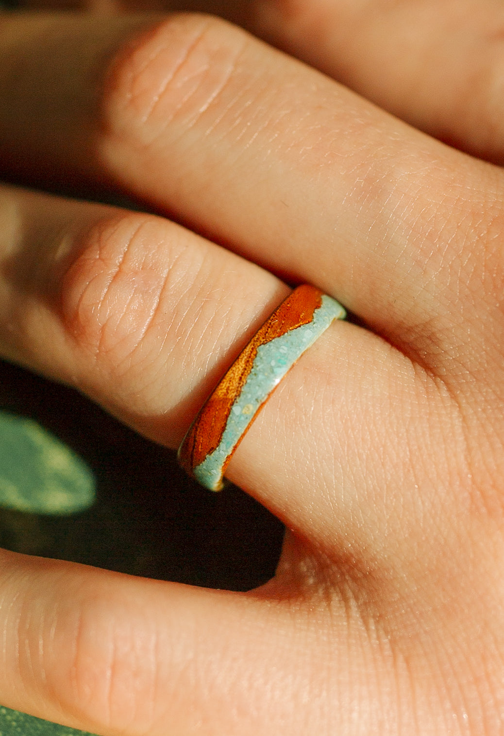 This ring is defined by its materials and the story they carry. The [material] used in this piece has its own history, which is preserved rather than replicated. Each ring is handcrafted using real inlays and solid construction, never artificial or printed finishes.