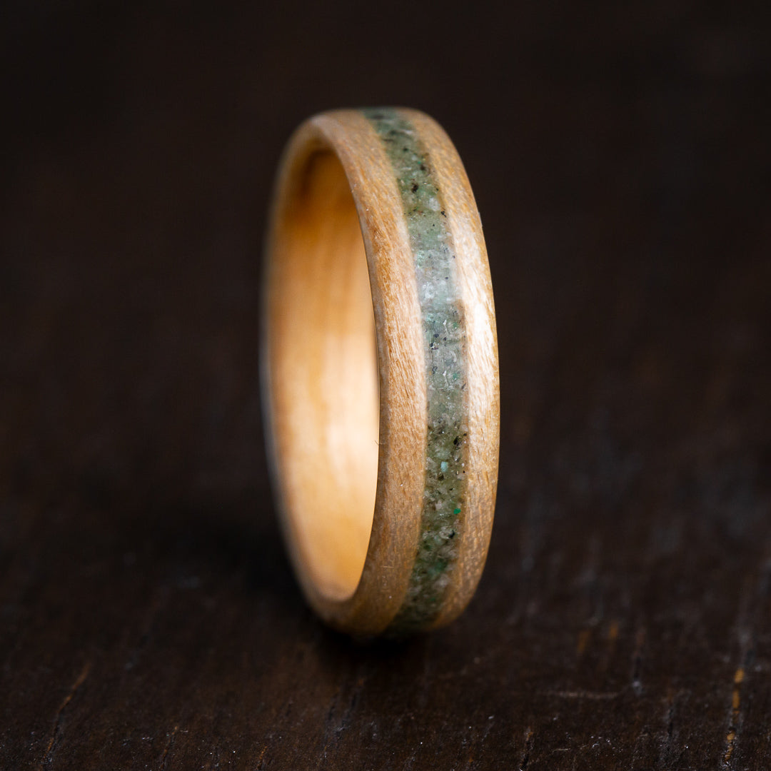 Get a fresh start with the Emerald on Maple, the perfect wooden ring for those born in May or anyone seeking renewal. Made from durable maple wood, this ring not only adds a touch of natural beauty to your look but also grants you luck, foresight, and everlasting youth.