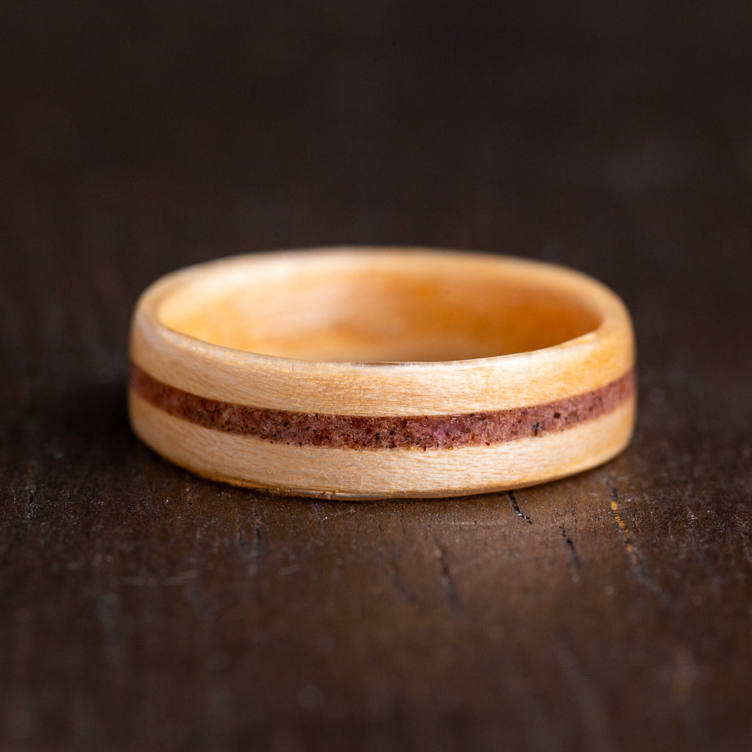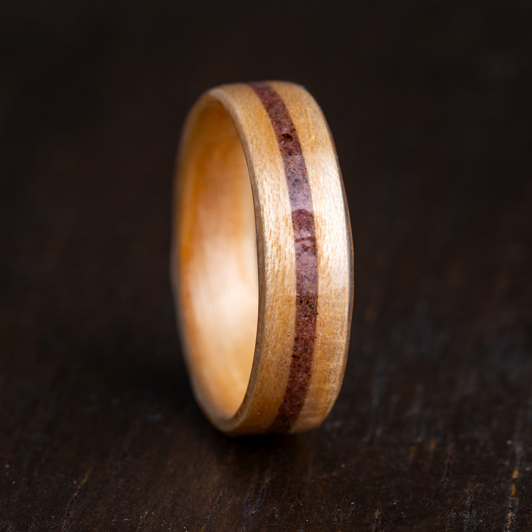 Celebrate January birthdays with our Garnet on Maple ring! This unique piece features the durable and elegant maple wood, with the added symbolism of protection, friendship, trust, commitment, and love. Perfect for those who value minimalism and meaningful jewelry.