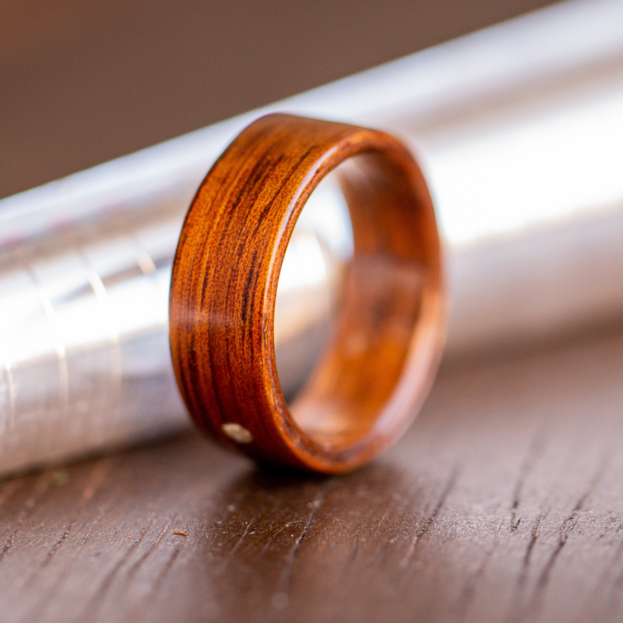 The ideal ring with a masculine edge, we’ve used Hawaii’s native Koa wood to create a durable, rich gained piece of jewelry, perfect for him. Koa, meaning ‘warrior’ in Hawaiian, has been used for generations to craft canoes and weapons. This wood has been essential to the people of Hawaii for centuries.