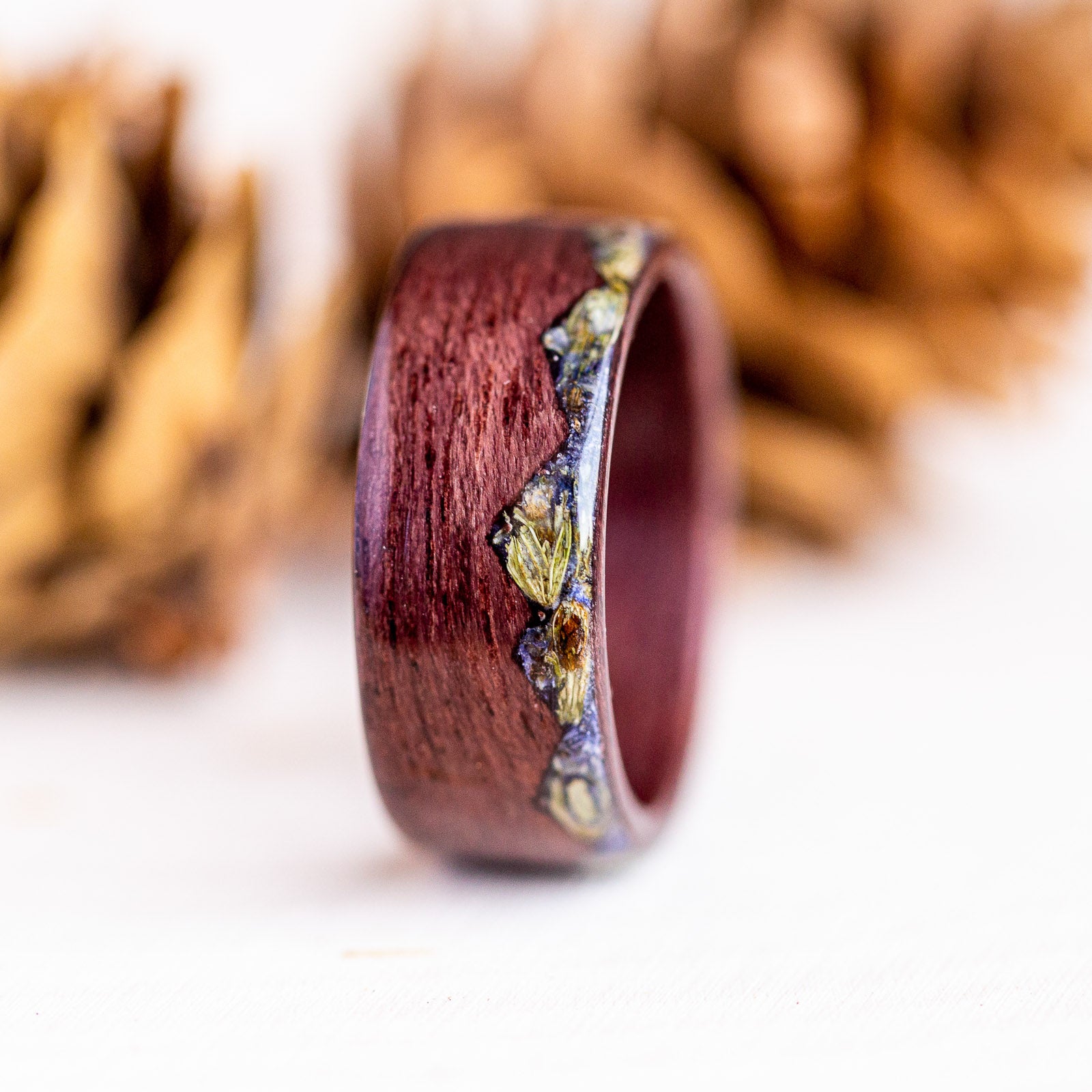 Crafted by hand from the Purple Heart Tree, this ring is as bold as it is beautiful. Purple heart has served as a common building material for applications such as dock pilings, boat decks, planking, bridge timbers, and even railroad ties. Taking inspiration from its versatility and strength, we’ve created a ring with nearly unmatched durability in its class.