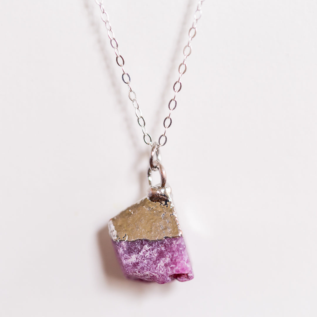 This elegant piece features the July birthstone. The stone is cut as raw and real as you, bringing your story full circle. Ruby is best known for its passionate, loving energy making it a perfect gift for the man or woman alike.