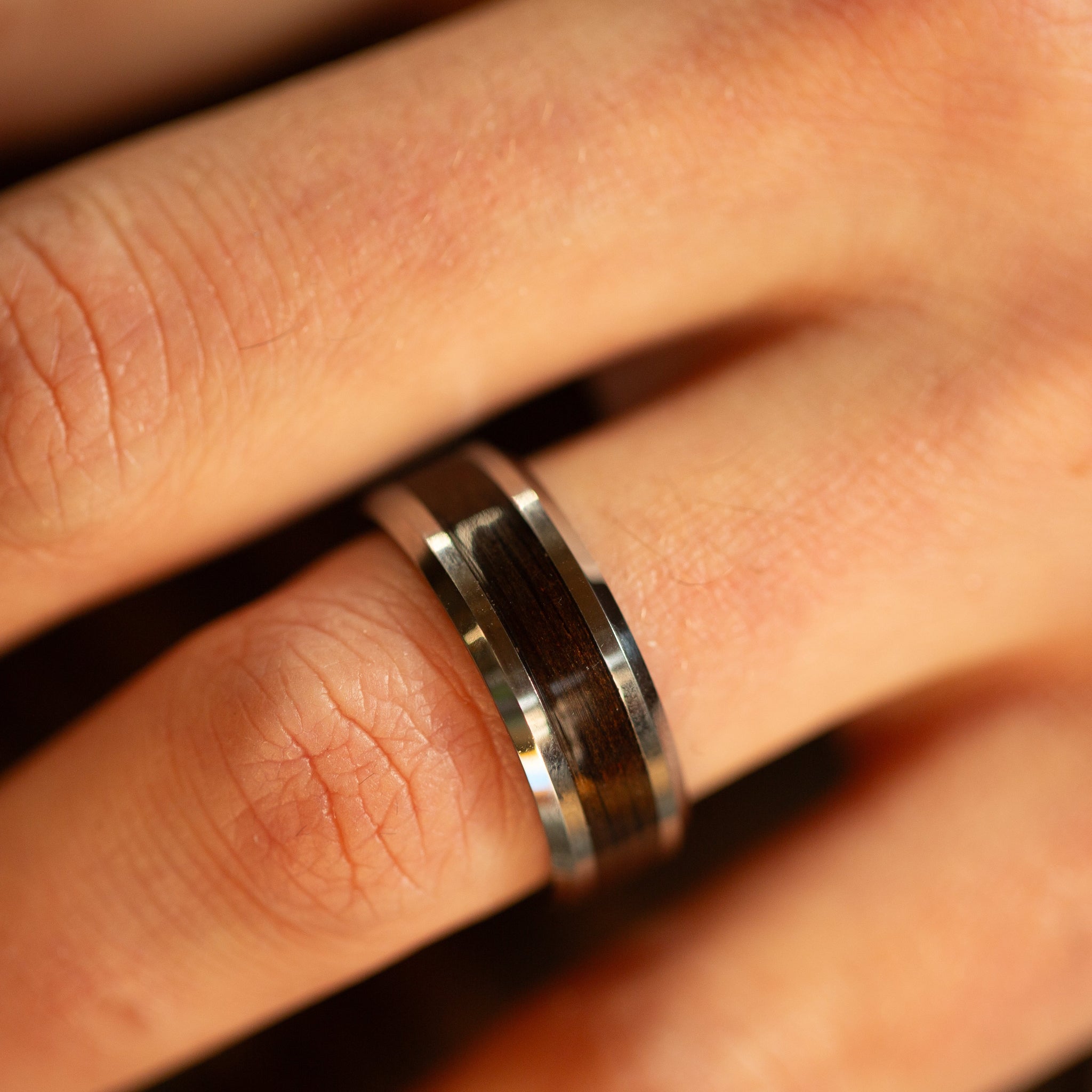 Built as a symbol of resilience, The Bastion pairs the strength of tungsten with the depth of genuine ebony wood. Long valued for its density, durability, and rarity, ebony has been used for centuries in objects meant to last. Set into a tungsten band, it brings warmth and character to a form defined by strength.