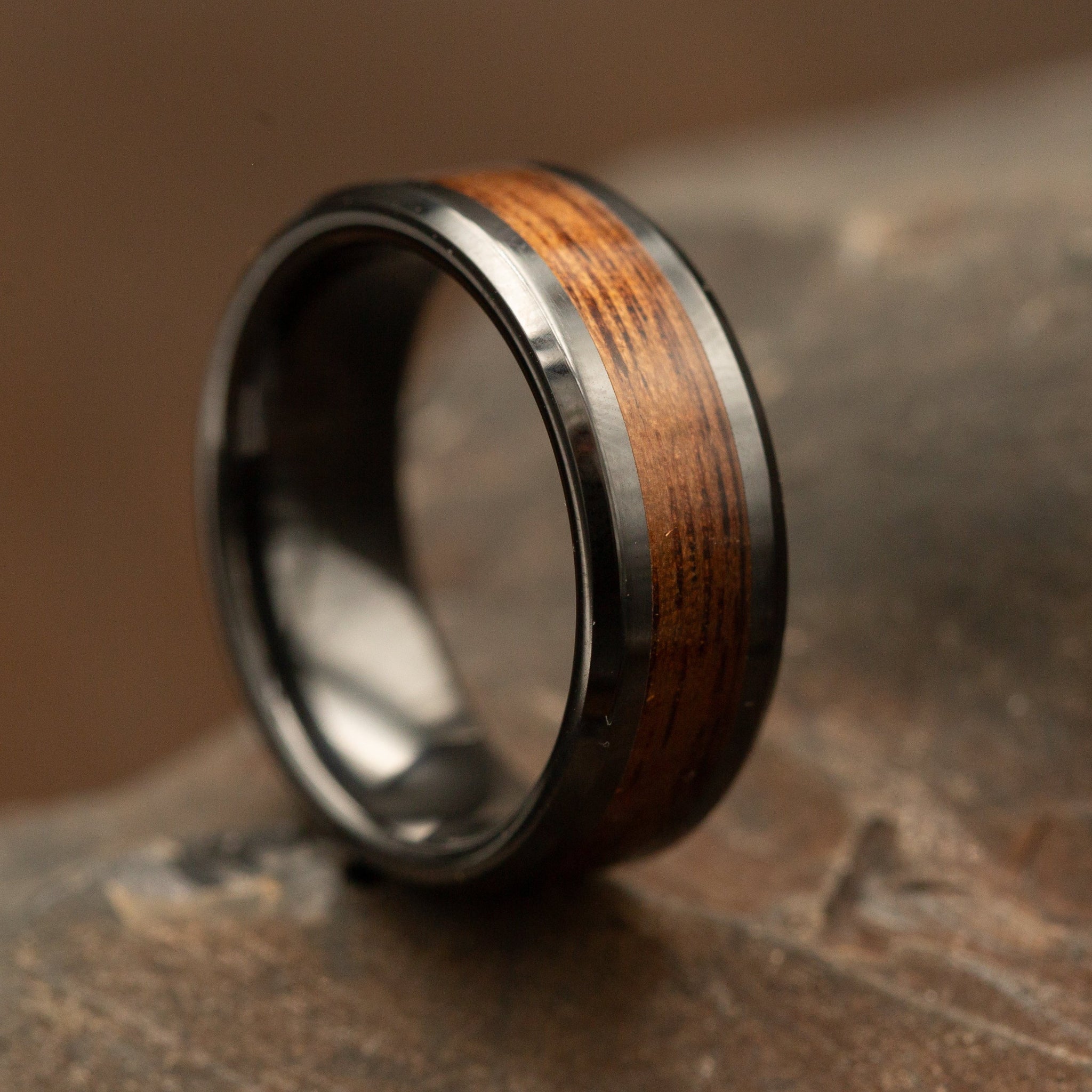 Possess a distinctive connection to American heritage through this refined ring, featuring genuine M1 Garand rifle wood carefully inlaid into its design. A sophisticated tribute to iconic craftsmanship and historical significance.