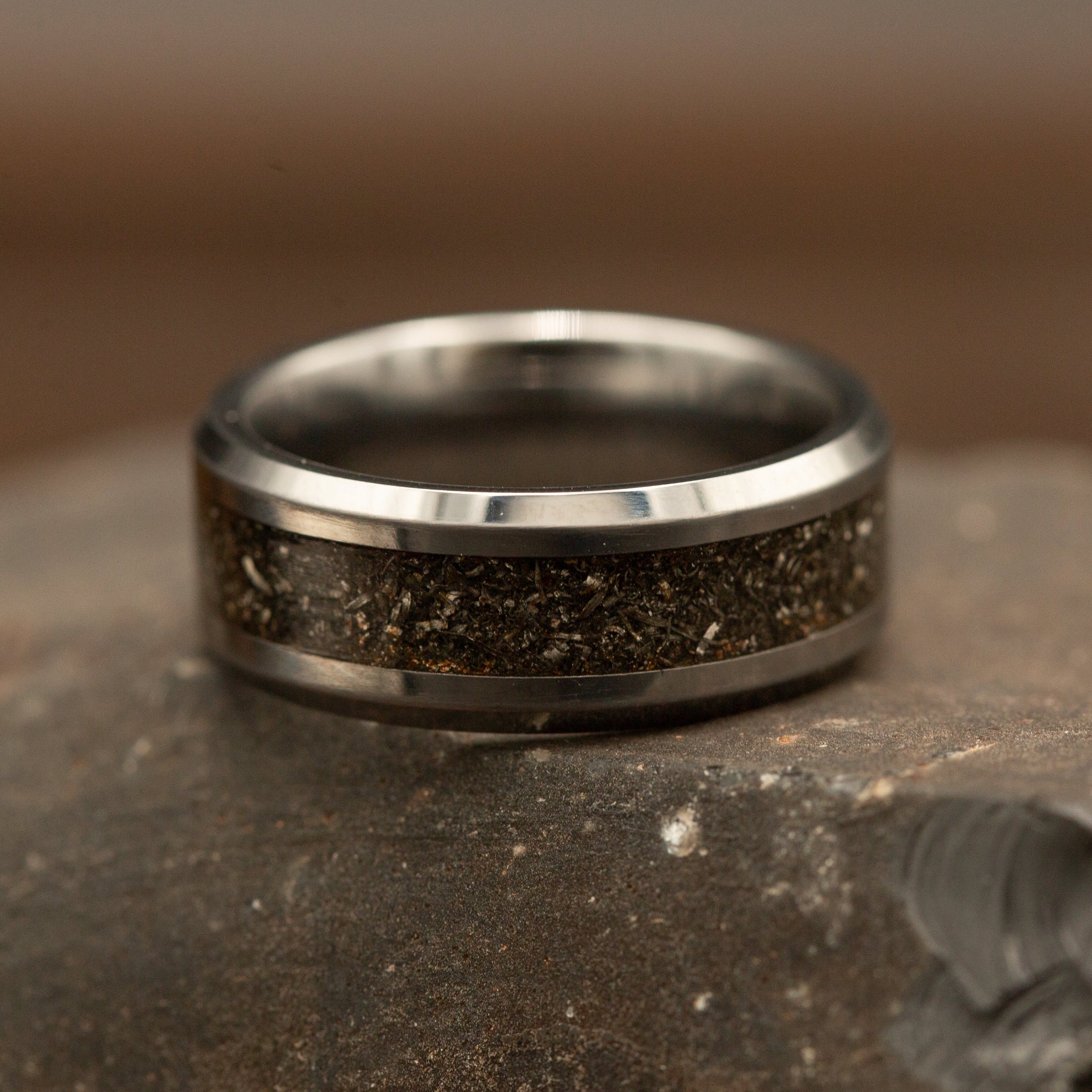 Crafted from tungsten and inlaid with genuine World War II Sherman tank steel, this ring transcends ordinary jewelry to become a wearable artifact. The marriage of industrial durability and historical significance creates a piece that honors the past while commanding presence on the hand. A sophisticated choice for those who appreciate meaningful craftsmanship and untold stories.